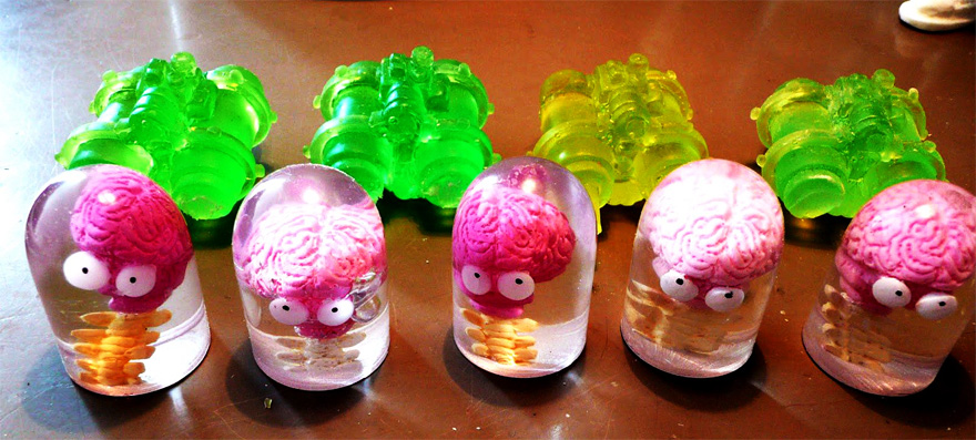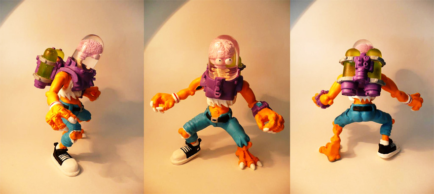 But I enjoy the anti aesthetics of action figures of the late 80’/early 90’s – fucked up stuff: Toxic Crusaders, Teenage Mutant Turtles, Mad Balls, Ugly Stickers, the Mars Attacks trading cards. Ugly stuff. Music and films are also great sources of inspiration. Im really into tacky horror movies from the 80’s – the uglier the better. For an example, the movie ‘Street Trash’ Is amazing, it has a scene were a homeless guy, sitting on a toilet, melts and turns into neon-purple goo. Just beautiful.
